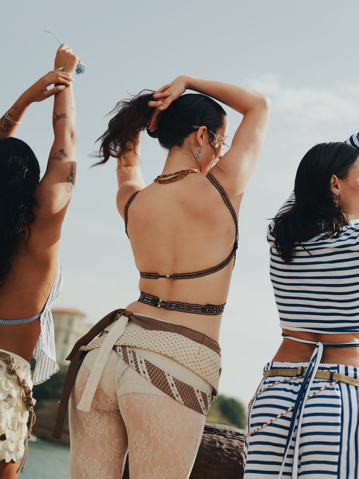Quand une maison d’upcycling rencontre un studio de location de mode, cela donne des looks uniques au styling puissant. Une fusion entre les pièces revalorisées de Salé et le vestiaire riche en pépites de Studio Paillette. Embarquez pour un défilé d’un genre nouveau. Plongez dans un voyage entre ville et mer, mis en lumière par la golden hour.