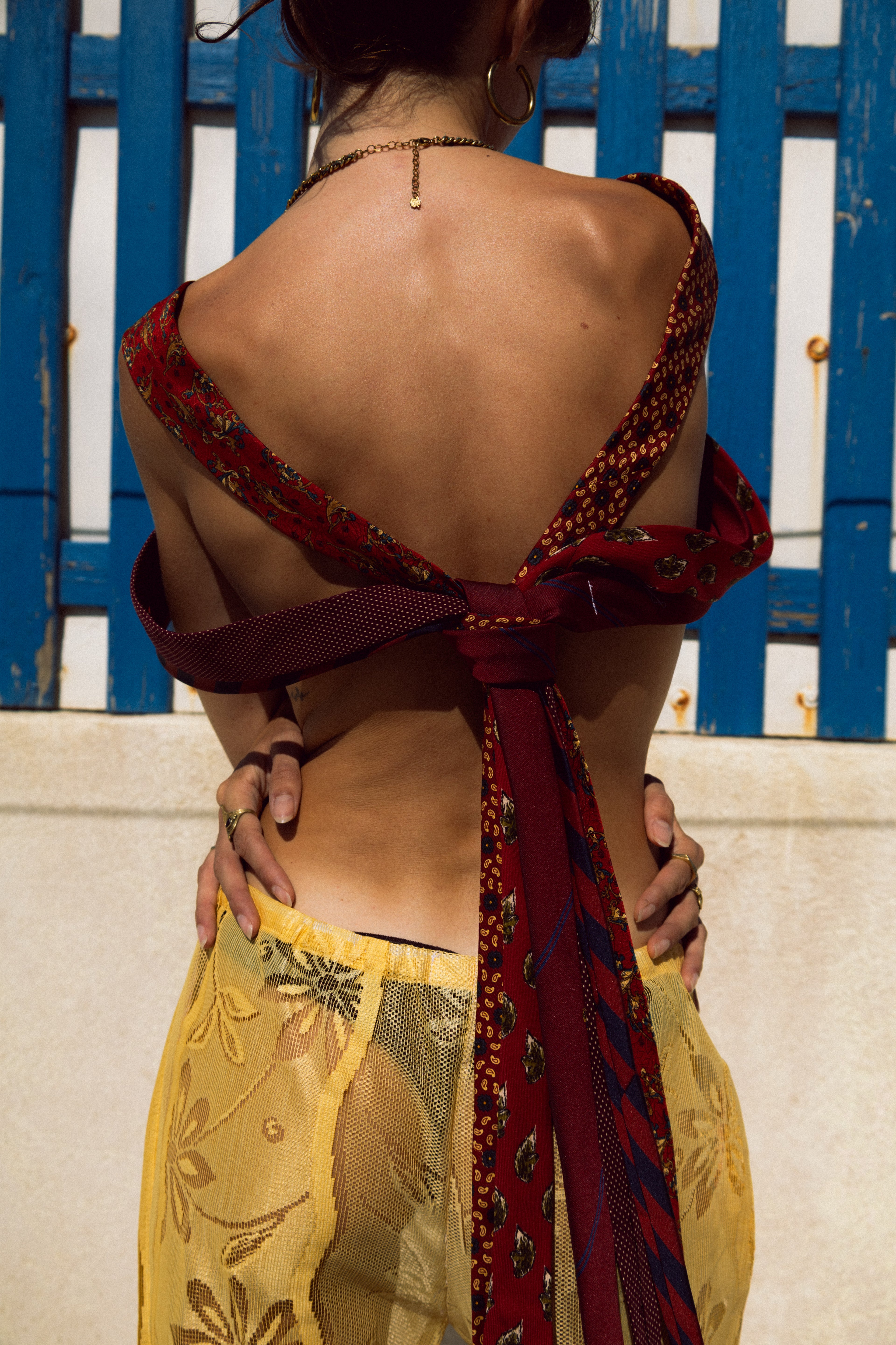 Une balade à Malmousque où matières et couleurs réfléchissent le soleil. Une collection estivale composée essentiellement de pièces uniques upcyclées à partir de vêtements de seconde main ou de rideaux chinés.